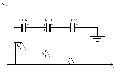 pierwszym znajduje się ładunek Q1, na kondensatorze